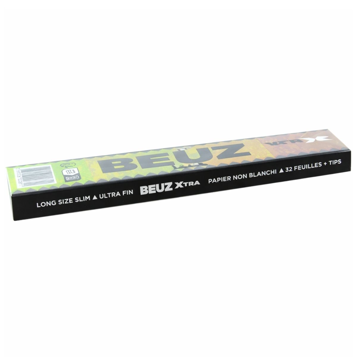 - 24 × Beuz Xtra Slim Long Brown Ungebleichte Blättchen Booklets (mit Tips)