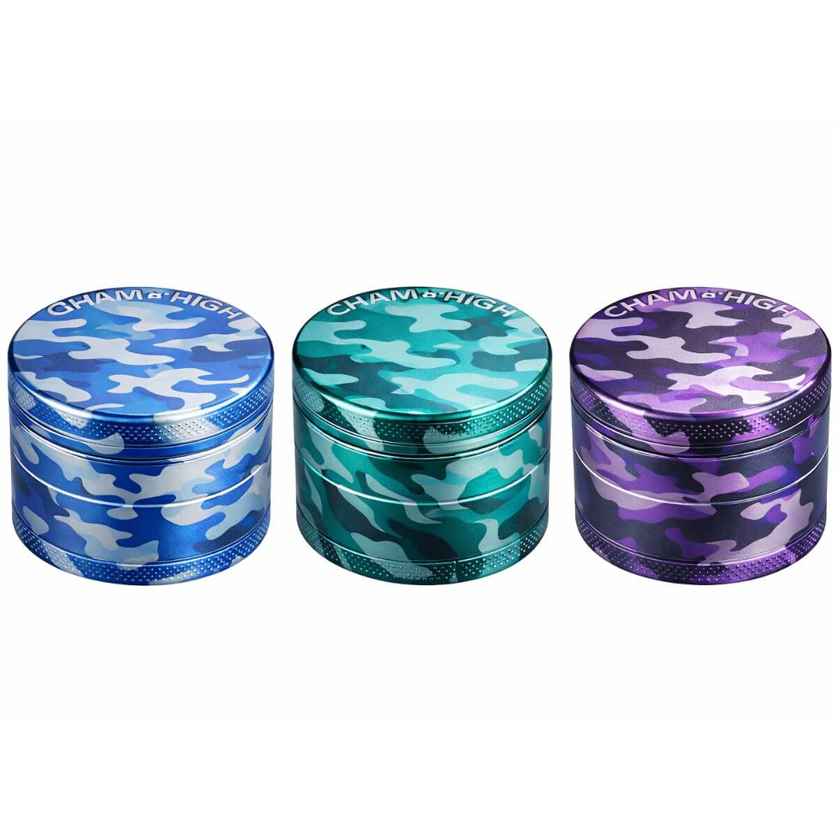 - 9 × Champ High Camo Grinder (50 mm, 4-teilig, Metall mit integriertem Pollenfänger)