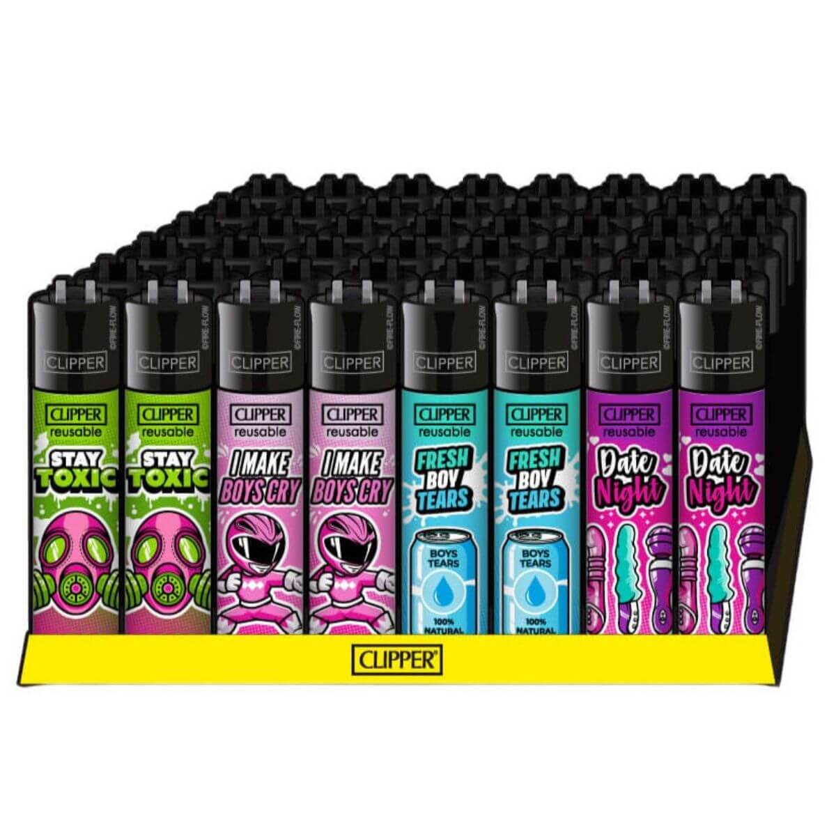 - 48 nachfüllbare Clipper Classic Girly Slogan Feuerzeuge in einem vorverpackten Display, bereit für Verkaufstheken