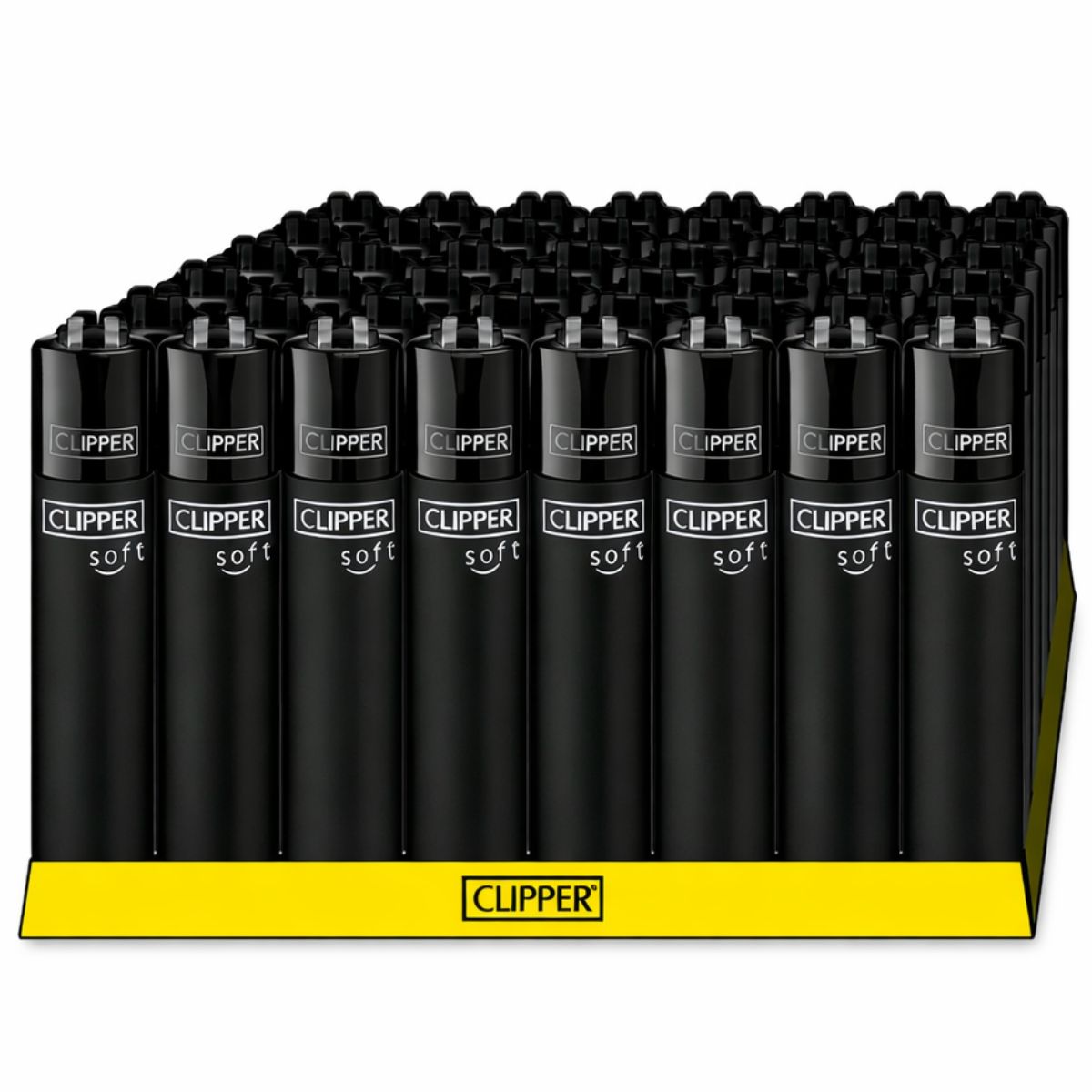 - 1 Verkaufsdisplay mit 48 × Clipper Classic Micro Soft Touch All Black nachfüllbaren Feuerzeugen