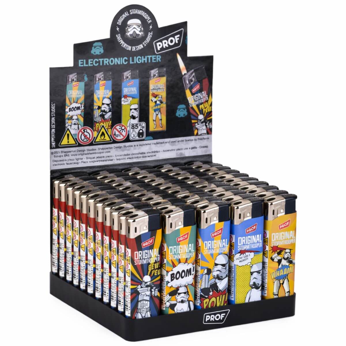 Das Prof Original Stormtrooper Elektronische Feuerzeug (50 Stk./Display) ist ein nachfüllbares elektronisches Feuerzeug mit einem markanten, von Stormtroopern inspirierten Design und einer zuverlässigen elektronischen Zündung. Dieses Prof Original Stormtrooper elektronische Feuerzeug wurde für den Einzelhandel mit Zubehör für Erwachsene entwickelt und bietet eine gleichbleibende Leistung im Alltag und gleichzeitig eine starke Neuheit und einen Popkultur-Appeal.