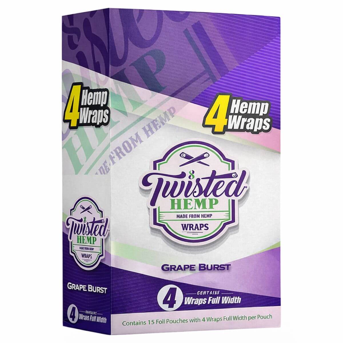 - 1 Verkaufsdisplay mit 15 einzeln verpackten Twisted Hemp Wraps Grape Burst-Varianten