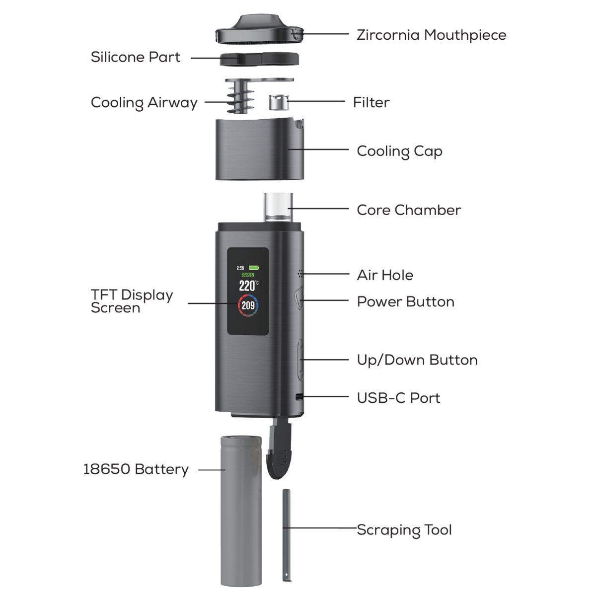 Der XVAPE XLUX Roffu Vaporizer für trockene Kräuter ist ein High-End-Konvektions-Vaporizer, der für anspruchsvolle erwachsene Benutzer entwickelt wurde, die Wert auf Leistung, Handwerkskunst und Vielseitigkeit legen. Er kombiniert reine Konvektionsheizung, austauschbare Quarz- und Edelstahlkammern und einen austauschbaren 18650-Akku für langanhaltende, vollständig anpassbare Sitzungen. Ein Farb-OLED-Display, haptisches Feedback und zwei Betriebsmodi (Sitzung/Bedarf) machen ihn sowohl raffiniert als auch intuitiv. Der XLUX Roffu wurde mit einem robusten, eloxierten Metallgehäuse gebaut und passt nahtlos in Premium-Lifestyle- und Headshop-Sortimente.